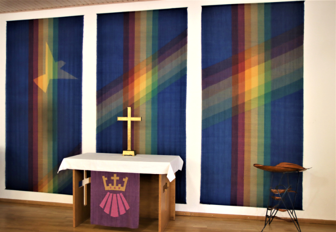 Hospital-Kirche: Crodel-Fenster am neuen Platz