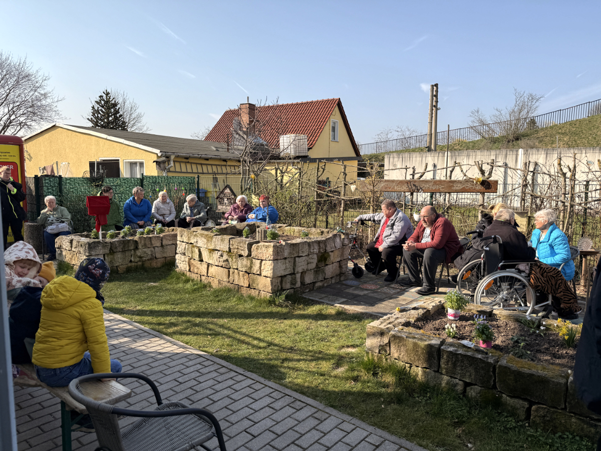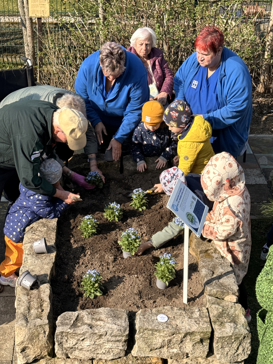 Zum landesweiten Aktionstag am 19. März hatte Pfarrer Stephan Pecusa unter dem Motto „Für Menschen mit und ohne Demenz“ in das Soziokulturelles Zentrum am Kosebruchweg 14 eingeladen. Neben Mitgliedern aus der Kirchengemeinde kamen auch Kinder aus der benachbarten Kita und Schule sowie Tagesgäste der Pflegeeinrichtung von Diakonie und Caritas. Eröffnet wurde das Treffen von Tina Läuter, die das Demenznetzwerk in Delitzsch leitet. Sie sagte: „Seit 2023 pflanzen Menschen im Frühling überall in Sachsen Vergissmeinnicht und setzen damit ein Zeichen: Menschen mit Demenz sind Teil unserer Gesellschaft und dürfen nicht vergessen werden. (...) Beim Vergiss-mein-nicht denken wir an Erinnerungen, Lächeln und die kleinen Gesten des Alltags, die Bedeutung tragen. Wir wollen sichtbar machen, was Demenz bedeutet, Entlastung und Unterstützung sichtbar machen und Hoffnung schenken, durch Nähe, gute Pflege und sinnvolle Aktivitäten. Niemand geht diese Reise allein.“ Danach pflanzten die Kinder zusammen mit den Erwachsenen die Vergissmeinnicht-Pflanzen in drei Hochbeeten. Und es wurde eine Tafel enthüllt, die über die Landesinitiative informiert. Im Anschluss daran lud Diakonie-Pfarrer Stephan Pecusa zu einem kleinen Gottesdienst ein und zum Abschluss gab es Kaffee, Kuchen und gute Gespräch für alle. Andreas Bechert